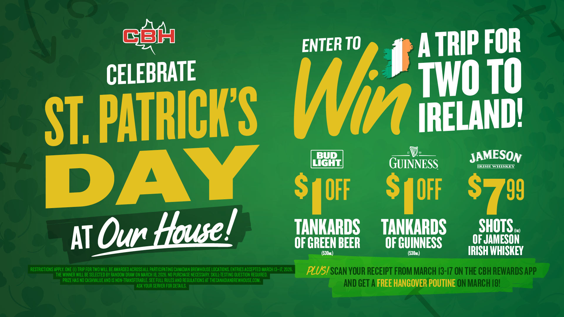 All green everything at our house this St. Patrick's Day: enjoy amazing specials and enter for a chance to win a trip for two to Ireland!