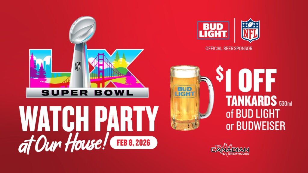 Cheer on your hometown heroes at The Canadian Brewhouse. Watch WHL and OHL games with friends, food, and great junior hockey vibes.