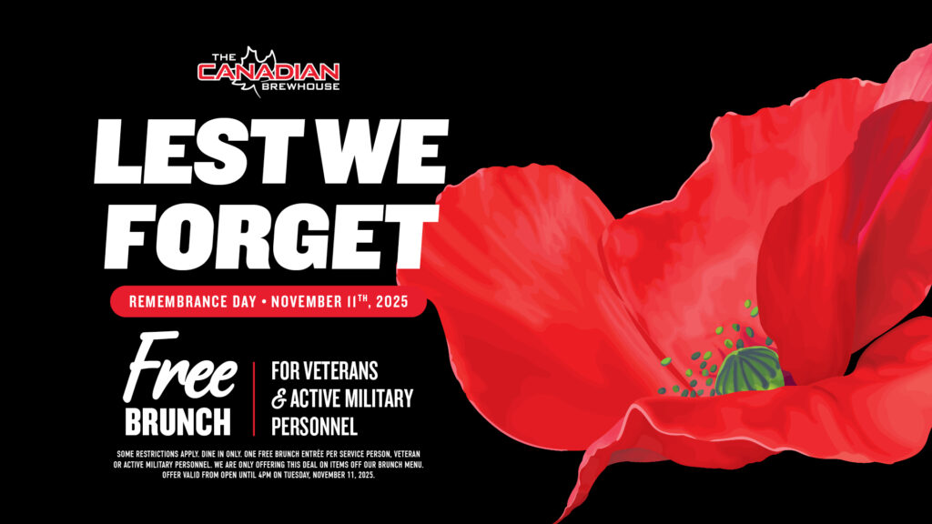Join us at Our House this Remembrance Day as we show our appreciation for those who’ve served. Veterans and active military personnel can enjoy free brunch from open until 4PM.