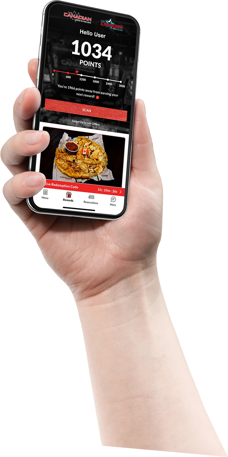 Earning points is easy! When you visit any Canadian Brewhouse or Canadian Icehouse location, simply open the app and tap Earn, then scan the barcode on your receipt!