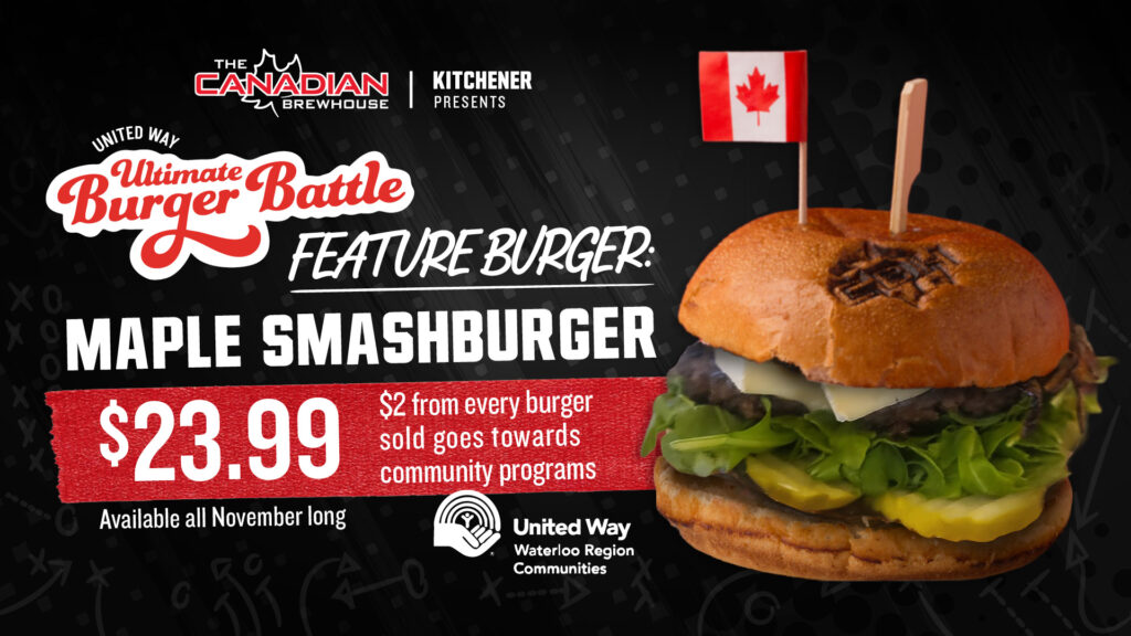 CBH Kitchener is fired up for the United Way Ultimate Burger Battle this November. We’ve crafted a one-of-a-kind feature burger that’s as Canadian as it gets—and it’s all for a good cause.